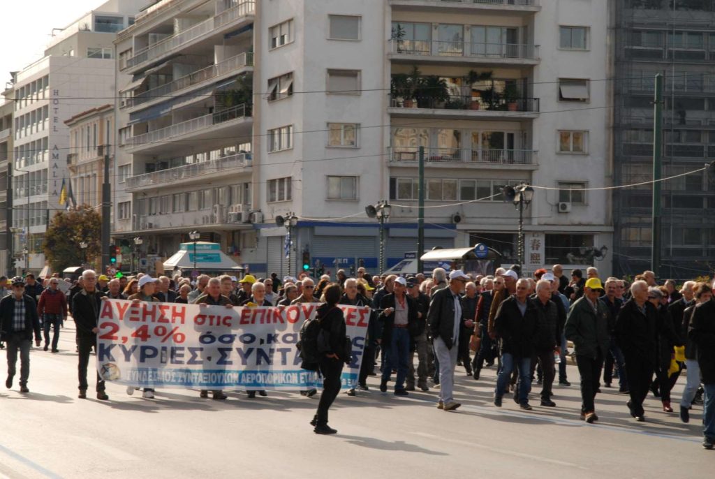 Μαζικό, διεκδικητικό και αγωνιστικό ήταν το συλλαλητήριο των συνταξιούχων. Η μεγάλη συμμετοχή των «απομάχων της δουλειάς» στην πρόσκληση της Ανώτατης Γενικής Συνομοσπονδίας Συνταξιούχων (ΑΓΣΣΕ), την Τρίτη 16 Δεκεμβρίου έξω από το Υπουργείο Εργασίας (Σταδίου 29), οδήγησε σε μια δυναμική πορεία μέχρι το Σύνταγμα και τη Βουλή. Η οδός Σταδίου, για πάνω από δύο ώρες, είχε κατακλυστεί από ένα «ασημένιο» ποτάμι οργής και διεκδίκησης.